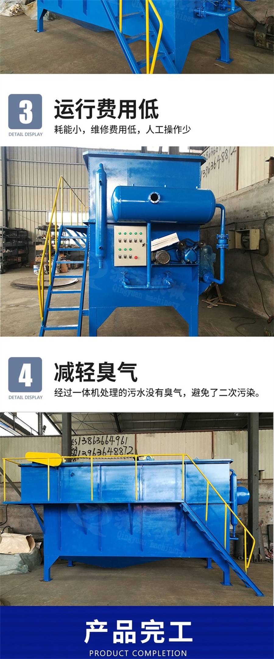 三、氣浮沉淀一體機(jī)結(jié)構(gòu)特點:整個裝置由污水泵、計量裝置、加藥箱、反應(yīng)槽、氣浮槽、氣浮系統(tǒng)、砂濾器、活性炭吸附柱及電控系統(tǒng)組成,10t/h 以下組合于同一基座,10t/h 以上為方便運輸由散件到現(xiàn)場組裝成整體。當(dāng)整個裝置調(diào)整至正常工作后,基本可處于自動運行狀態(tài),操作方便。