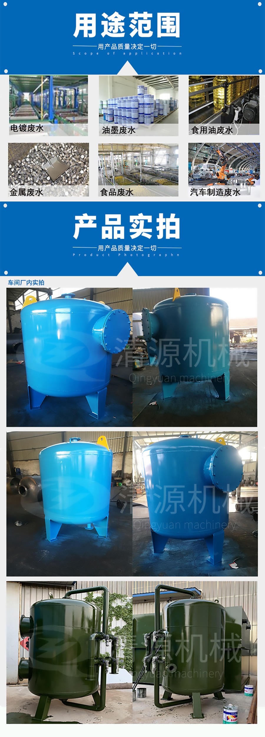 1、多介質過濾器廣泛用于水處理的工藝中,可以單獨使用,但多數(shù)是做為水質深度處理(交換樹脂、電滲析、反滲透)的預過濾。