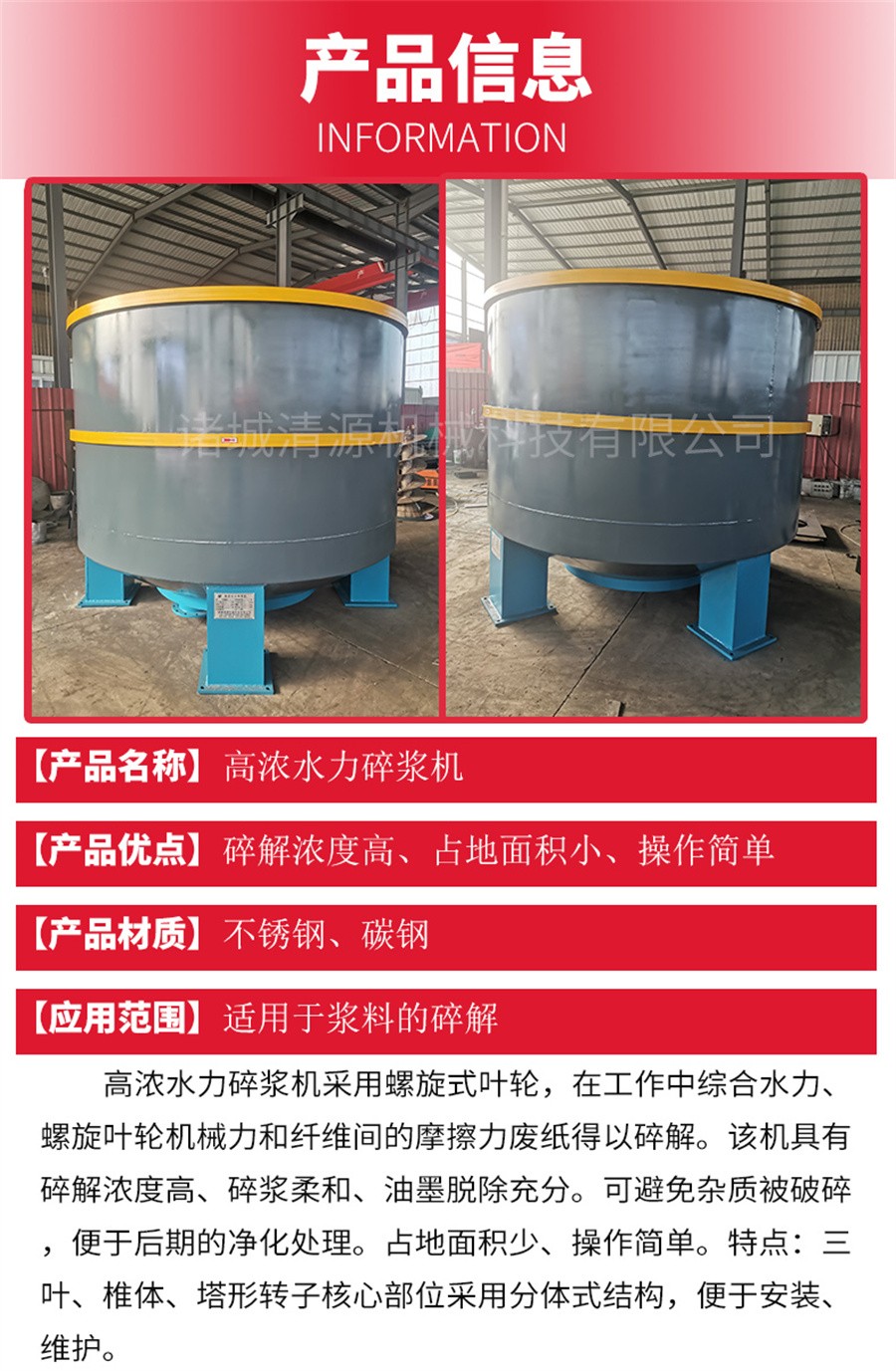 立式低濃水力碎漿機(jī)是造紙工業(yè)用來碎解漿板、紙機(jī)損紙、商品廢紙及濕度紙的主要設(shè)備,適用于纖維的分離、漿料的凈化和粗選。